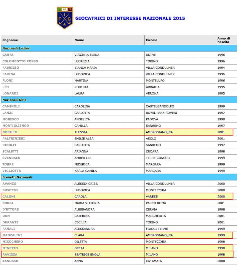 Golf Giovani Lombardia